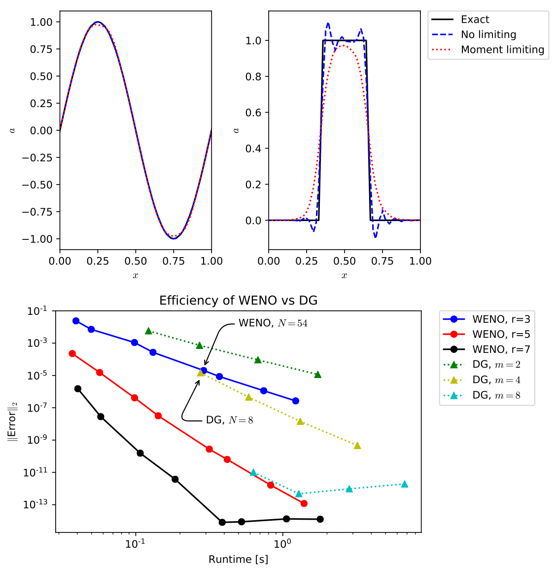 $$ \partial_t \phi_i + \frac{v \left( \phi_{i+1} - \phi_{i-1} \right)}{2 \, \Delta x} = \mathcal{O} \left( \Delta x^2 \right). $$$\Delta x$ "small": higher order usually better. However, costs increase: